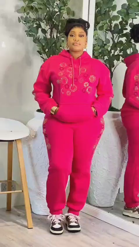 Women’s Pink Embellished Winter Hoodie and Jogger Set | Oversized Tracksuit | Godshandfashion