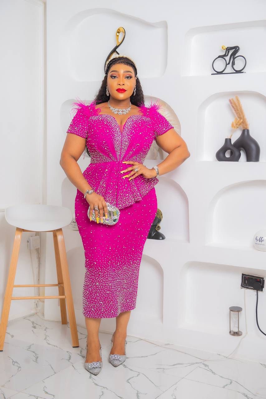 This is a pant and gorgeous beaded top. Very rich for that evening party or any occasion that you want to stand out. This material stretches a little bit but it true to size. The pant is a big pant.